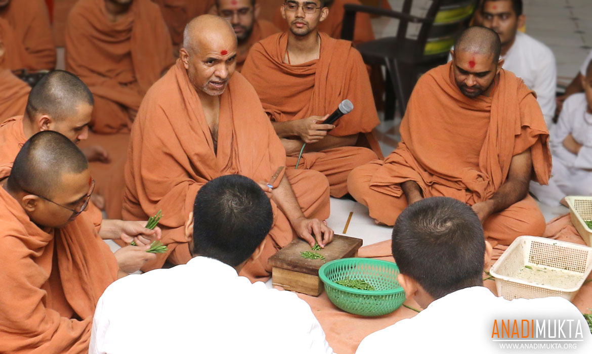 આ કીર્તનની શરૂઆત થતાં જ વ્હાલા ગુરુવર્ય પ.પૂ.સ્વામીશ્રીએ ઉતાવળા ઉતાવળા ઠાકોરજી જમાડીને કીર્તનભક્તિમાં આવવા માટે પીરસનાર પૂ. સંતને કહ્યું, “સ્વામી, કીર્તન સરસ છે માટે અમારે જલદી જવું છે.” એમ કહીને ગુરુવર્ય પ.પૂ.સ્વામીશ્રી ચળું કરીને જળ ધરાવીને કીર્તનભક્તિમાં પધાર્યા.