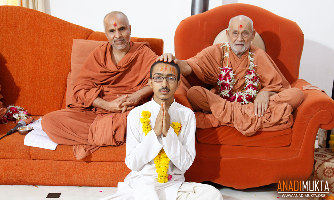 દીક્ષાવિધિમાં ગુરુદેવ પ.પૂ. બાપજીએ દીક્ષાર્થી મુક્તોને વસ્ત્ર અર્પણ કરી નૂતન નામાભિધાન કર્યું. ત્યારબાદ ગુરુવર્ય પ.પૂ. સ્વામીશ્રીએ ગુરુદેવ પ.પૂ. બાપજીનું પુષ્પહારથી પૂજન કર્યું. ગુરુદેવ પ.પૂ. બાપજી હાર કંઠમાંથી ન ઉતારે તેવો સંકેત આપતાં ગુરુવર્ય પ.પૂ. સ્વામીશ્રીએ થોડી વાર હાર પકડી રાખ્યો પરંતુ,