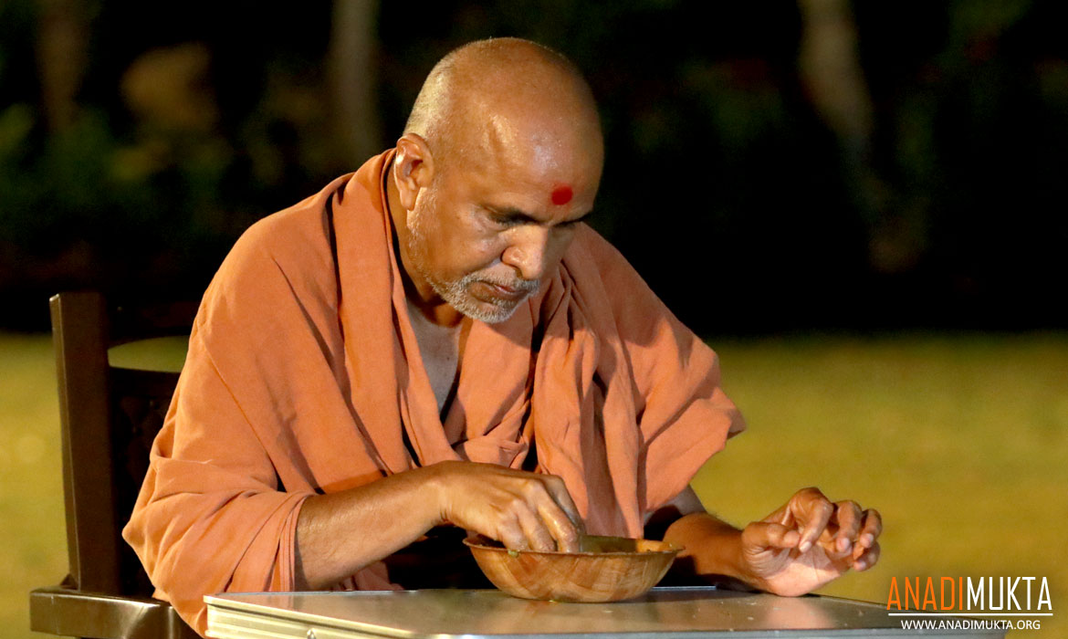 ગુરુવર્ય પ.પૂ. સ્વામીશ્રીએ કહ્યું, “સ્વામી, અહીંયાં સેવક જોડે આવી જાવ. અહીં જગ્યા છે જ.” પૂ. વડીલ સંતે ના પાડી. એટલે ગુરુવર્ય પ.પૂ. સ્વામીશ્રીએ પણ પોતાનું પત્તર ટેબલ પરથી હસ્તમાં લઈ લીધું અને કહ્યું, “તો મારે પણ ટેબલ પર નથી જમવું. મને ફાવે છે કે નહિ તે જોવું છે.” પૂ. વડીલ સંતે ઘણી પ્રાર્થના કરી પણ ગુરુવર્ય પ.પૂ. સ્વામીશ્રીએ પત્તર ન મૂકતાં પૂ. વડીલ સંતે ટેબલ પર પત્તર મૂક્યું પછી જ ગુરુવર્ય પ.પૂ. સ્વામીશ્રીએ ટેબલ પર પત્તર મૂક્યું.