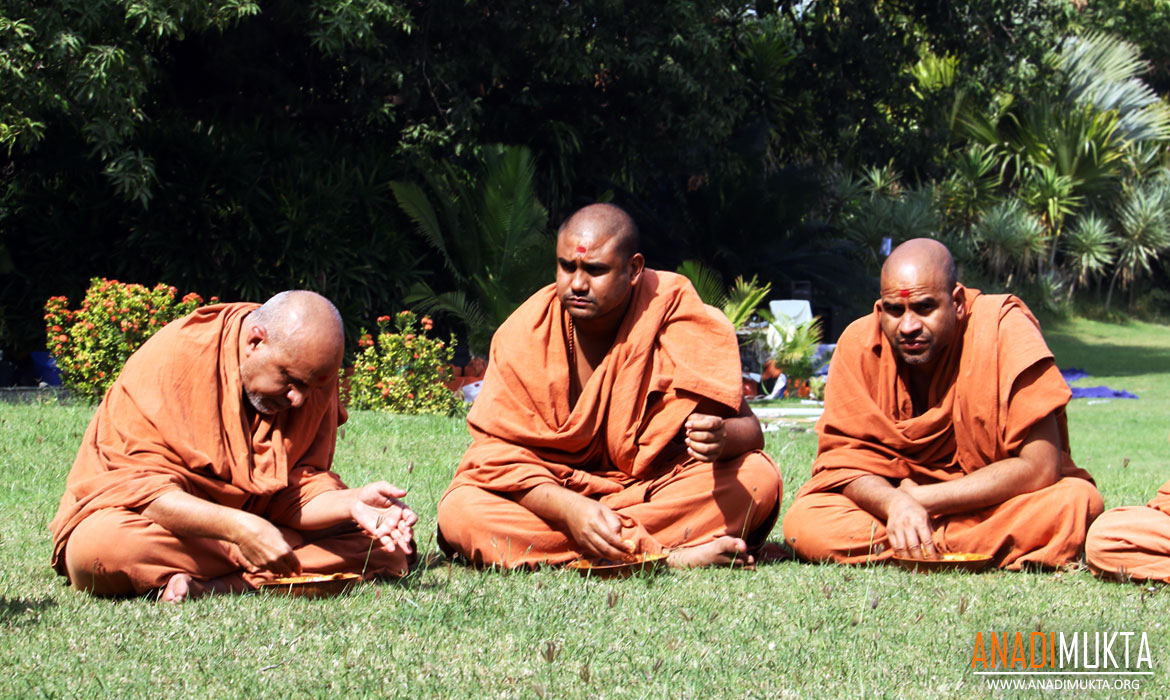 ગુરુવર્ય પ.પૂ.સ્વામીશ્રીએ તે સંતોને બોલાવવા માટે કહ્યું. જ્યાં સુધી કોઈ સંતો ન આવ્યા ત્યાં સુધી રાહ જોઈ અને તે દરમ્યાન બે મિનિટ ધૂન કરી. પૂ.સંતો આવ્યા એટલે ગુરુવર્ય પ.પૂ.સ્વામીશ્રીએ જમવાનું શરૂ કર્યું.