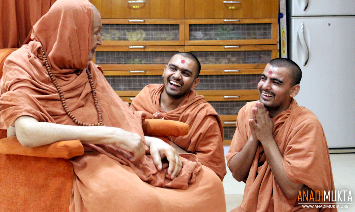 તા. ૧૯-૪-૨૦૧૭ને બુધવારના રોજ વાસણા ખાતે સાંજે પૂ.સંતો ગુરુદેવ પ.પૂ.બાપજીને સંતઆશ્રમના હોલમાં વ્હિલચેરમાં વિહાર કરાવતા હતા. બીજી બાજુ પૂ.સંતો રસોડામાં રસોઈ કરતા હતા.
