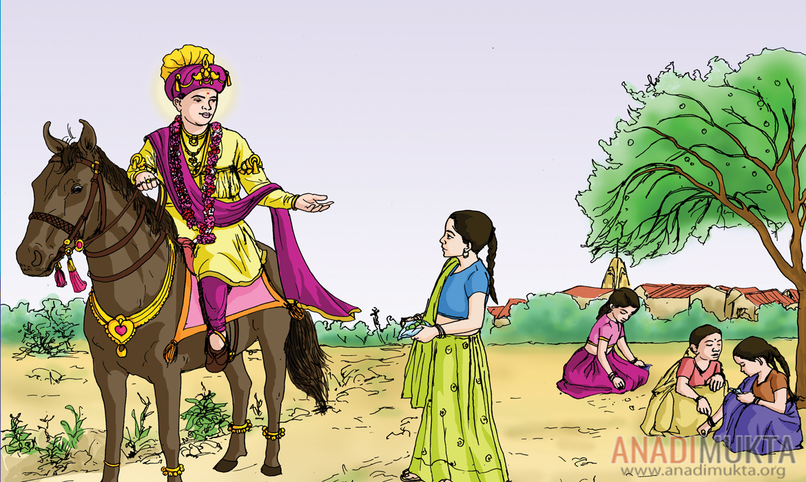 તેવામાં રાજા જેવા પેલા ઘોડેસવાર નીચે ઊતર્યા. તેમણે પોતાના મુખ પર બાંધેલી બુકાની કાઢી નાખી. અમર તેમનું મુખ જોઈ એકદમ ખુશ થઈ બોલી, “ઓ મારા નાથ ! તમે ?! હું આપને ઓળખી શકી નહીં. રાજી રહેજો, દયાળુ !” આટલું બોલતાં તે મહાપ્રભુના ચરણોમાં પડી ગઈ.