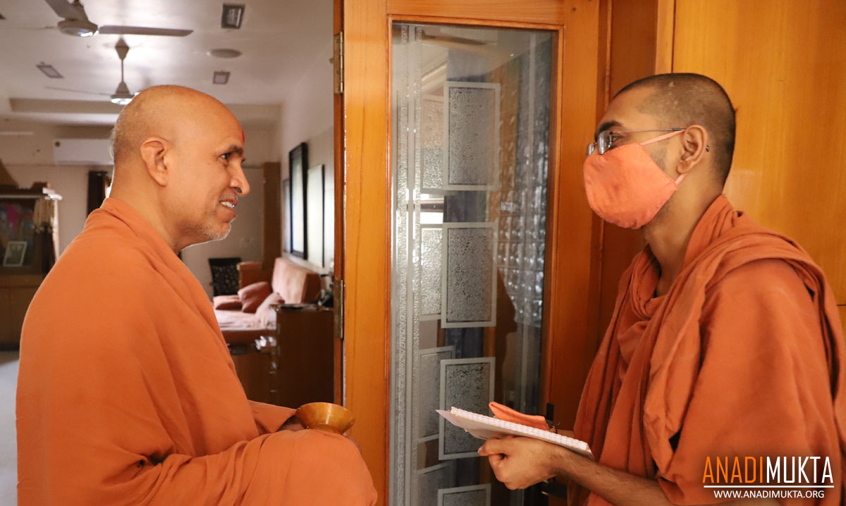 ગુરુજી ‘પ્રથમ અન્યની ચિંતા રાખવી’ એ વાત વધુ ને વધુ દૃઢ કરાવતાં બોલ્યા : “સ્વામી, જે બીજાની ચિંતા કરે ને રાખે એ જ સાધુ... સ્વામી ! અન્યના સ્થાને બેસતા શીખવું...”