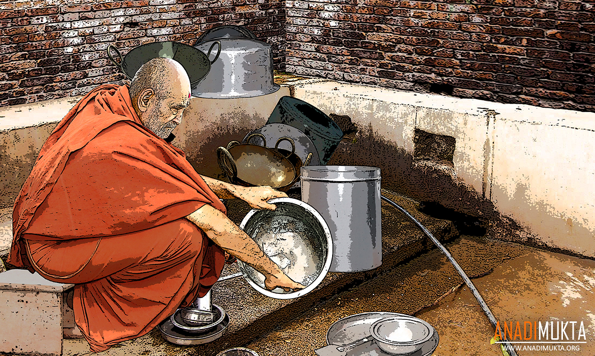 “શું કથામાં જઈને બેસી જાવ છો! આટલાં વાસણ ઘસી નાખો.” એમ કહી ગાંહડો વાસણ ગુરુદેવ પ.પૂ. બાપજી પાસે સંતો ધોવડાવતા.