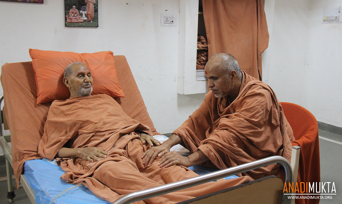 ઈ.સ. 2013-14માં એસ.એમ.વી.એસ. સંસ્થાના વડીલ સંત પૂ. આનંદસ્વામીના અંતિમ મંદવાડના દિવસો હતા. ગુરુવર્ય પ.પૂ. સ્વામીશ્રી એટલે દયાનો દરિયો અને માતૃવાત્સલ્યતાનો સાગર. જેઓ પળે પળે સંસ્થાના એક એક સંતનું જતન સ્વયં કરે અને કરાવે.