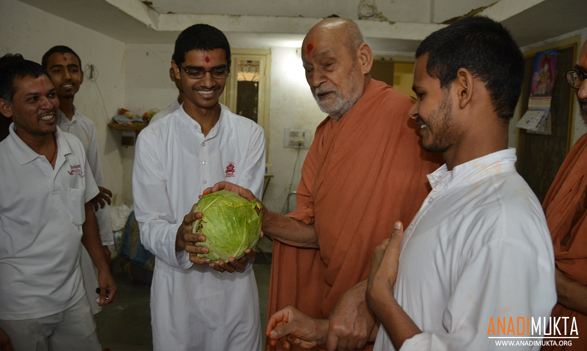 ક્રમશ: શાકભાજી વિભાગ, જનરલ સ્ટોર, કોઠાર વગેરે વિભાગમાં પધારી દરેક વસ્તુની સાચવણી કરવાની ઝીણામાં ઝીણી દૃષ્ટિઅને સૂઝ આપી. વાહ ! દયાળુ વાહ ! સંસ્થાના વડા સ્થાને હોવા છતાં સંસ્થાના ખૂણેખૂણે ધ્યાન આપી ઠાકોરજીની મિલકતનું કેવું જતન કરવું તેની અલૌકિક રીત શીખવનાર ગુરુદેવના ચરણોમાં કોટિ કોટિ વંદન.
