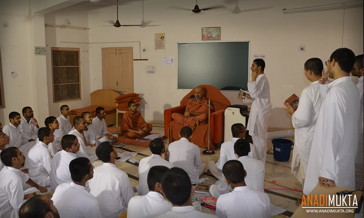 તા. ૨૦-૦૭-૨૦૧૩ના રોજ ગુરુદેવ પ.પૂ. બાપજી સ્વામિનારાયણ ધામ ખાતે સંત તાલીમ કેન્દ્રમાં સમર્પિત મુક્તોને લાભ આપી રહ્યા હતા.