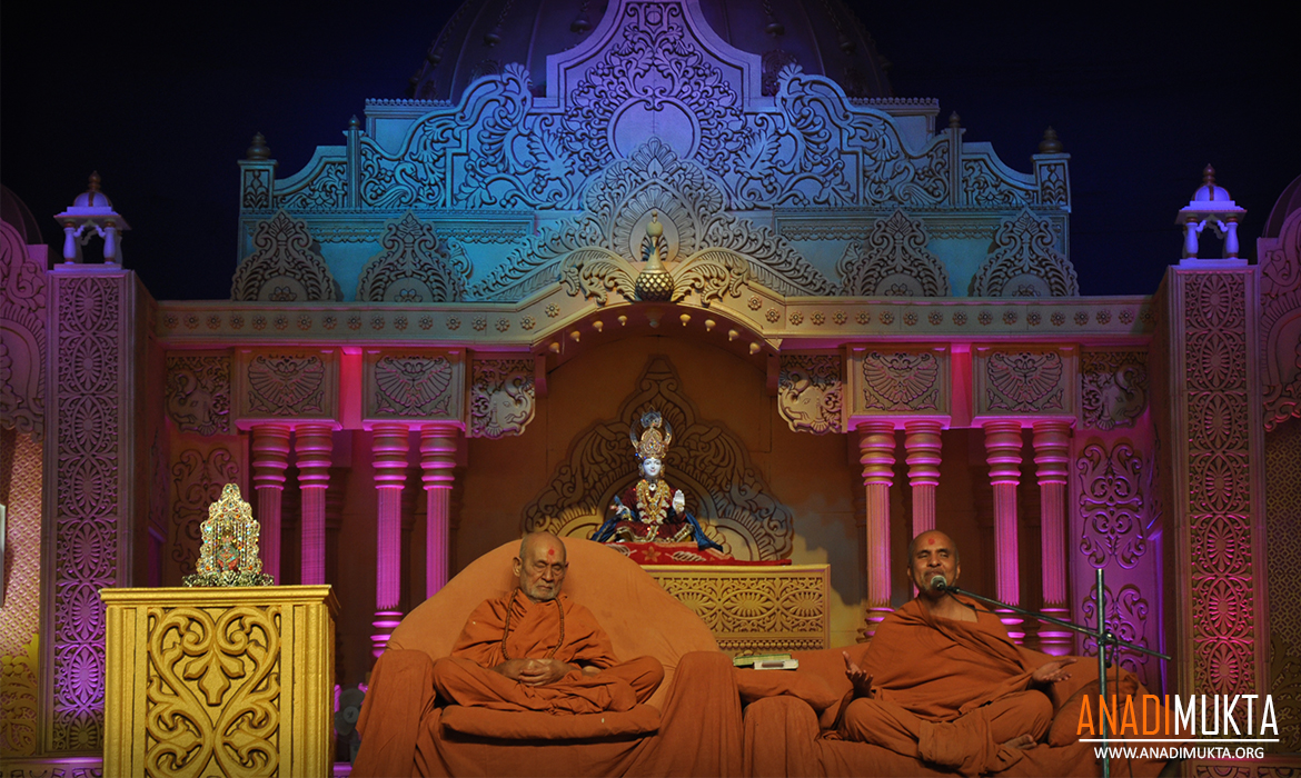 જયારે ગુરુવર્ય પ.પૂ. સ્વામીશ્રીએ મળેલા સત્પુરુષની અસ્મિતા તથા મહિમાગાનની શરૂઆત કરી, ત્યારે જેઓ આત્મશ્ર્લાઘા કદી ન કરે પરંતુ પોતાની હાજરીમાં કોઈ પોતાનું મહાત્મ્ય ગાય તે પણ દીઠું ન ગમે. તેઓએ સદા તે પ્રત્યે અણગમો જ દર્શાવી એકમાત્ર મહારાજનો જ મહિમા ગાવાનો આગ્રહ સેવ્યો છે એવા ગુરુદેવ પ.પૂ. બાપજી ચાલુ સભાએ કંઈક કામના બહાને સંત આશ્રમમાં પધારી ગયા.