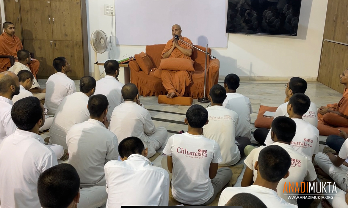 સ્વામિનારાયણ ધામ, ગાંધીનગર ખાતે સમર્પિત તાલીમ કેન્દ્રમાં છેલ્લા અઢી વર્ષથી સમર્પિત મુક્તો ગુરુવર્ય પ.પૂ. સ્વામીશ્રીના સાંનિધ્યમાં ત્યાગીજીવનના મૂલ્યો શીખી રહ્યા હતા. સંત ઘડવૈયા ગુરુવર્ય પ.પૂ. સ્વામીશ્રીએ સમર્પિત મુક્તોનું નિકટ રહી ખૂબ ઘડતર કર્યું હતું. સમર્પિત મુક્તોને સાધક દીક્ષા અપાય બાદ વિશેષ ઘડતર પામવા એસ.એમ.વી.એસ.ના અન્ય સેન્ટરોમાં રહેતાં પૂ. સંતો સાથે જવાનું હતું. સાધકમુક્તો અન્ય સેન્ટરમાં પધારે તે પૂર્વેની છેલ્લી સભામાં ગુરુવર્ય પ.પૂ. સ્વામીશ્રી લાભ આપવા પધાર્યા.
