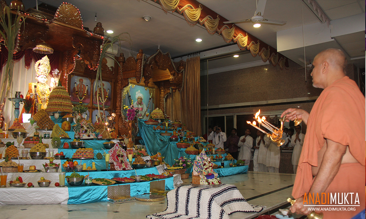 તા. ૪-૧૧-૨૦૧૩ના રોજ ગુરુવર્ય પ.પૂ. સ્વામીશ્રી બેસતા વર્ષના દિને એસ.એમ.વી.એસ.ના જુદા જુદા મંદિરમાં અન્નકૂટ આરતીનો લાભ આપવા પધારવાના હતા.