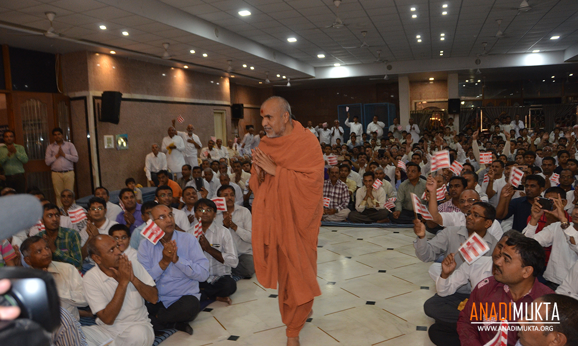 તા. 14-3-2015ના રોજ પૂ. સંતો ગુરુજીને જમાડતા આનંદસહ કહેતા હતા કે, “દયાળુ, આવતી કાલે આપણને હૉસ્પિટલમાંથી રજા મળી જવાની છે. આવતી કાલે તો સ્વામિનારાયણ ધામ પર આવવાનું થશે ને... સંતો, STKના મુક્તો ને ગુરુકુલના મુક્તોને આપનાં દર્શનનો તલસાટ છે.” ત્યારે જેના રોમ રોમમાં શ્રીહરિનું કર્તાપણું દૃઢ છે એવા ગુરુજીએ સહસા જ સંતોને કહ્યું, “મહારાજની ઇચ્છા હશે ને કાલે ધામ ઉપર લાવશે તો આવીશું. એ જેમ રાખે તેમ રહેવાનું. એ જ્યારે, જ્યાં, જેવી રીતે, જેમ રાખે તેમ રહેવાનું. આપણી કોઈ ઇચ્છા કે કોઈ સંકલ્પ ન હોવો જોઈએ.”