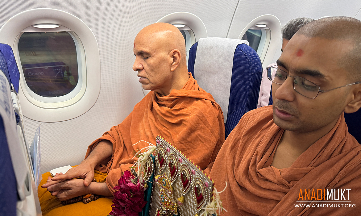 પૂ. સંતોની ખૂબ પ્રાર્થના પછી ગુરુજીએ હા ભણી તેથી ફ્લાઇટમાં સીટમાં પોઢી શકાય તેવી સંતોએ વ્યવસ્થા કરી.