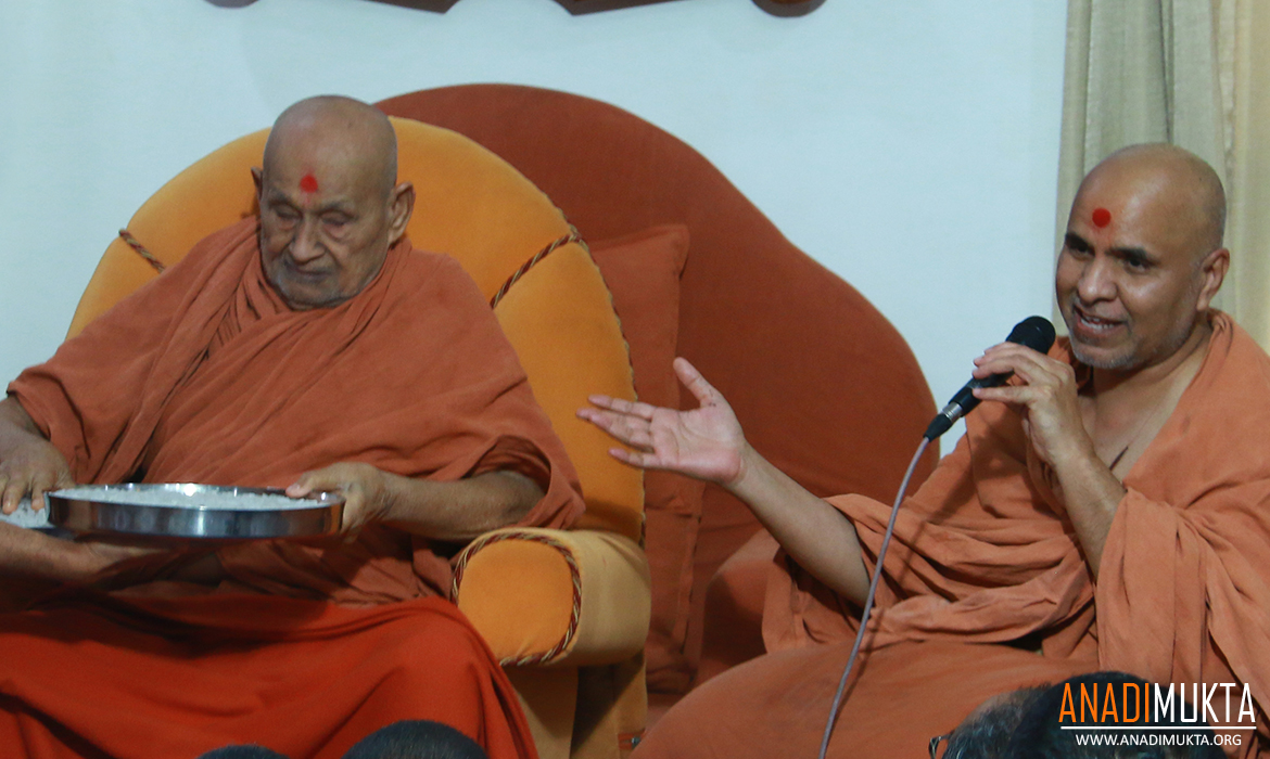 થોડી વાર બાદ ગુરુદેવ પ.પૂ. બાપજીએ પૂ. સેવક સંતને પૂછ્યું, “સ્વામી, અમે બે દાણા સાકર લઈએ ?” વાહ ! ગુરુદેવ વાહ ! સંસ્થાના ગુરુપદે હોવા છતાં નાની એવી વસ્તુ પણ પૂછ્યા વિના સ્વીકારી નહીં.